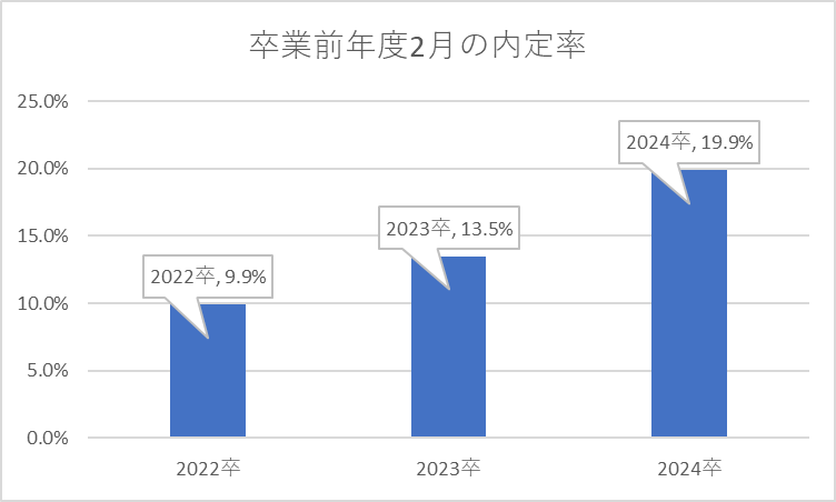 上記のようになっており、内定の早期化というトレンドは圧倒的です。